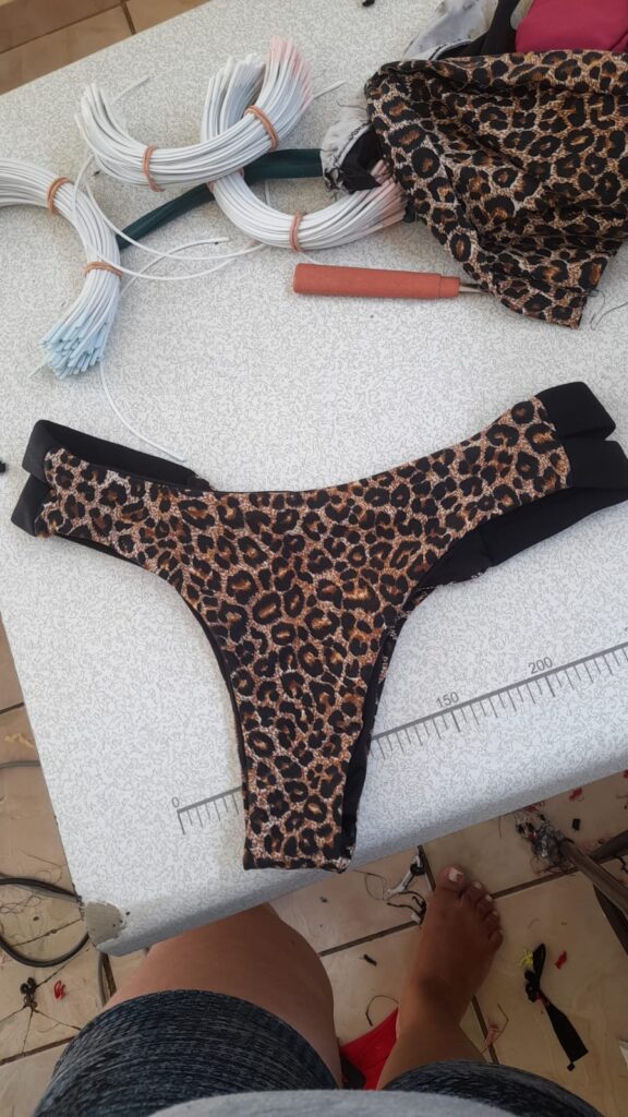 A costureira relata que com a desobrigatoriedade do uso de máscaras em locais abertos, as suas vendas caíram. E ela acabou migrando para a produção de roupas de banho como biquínis sendo um mercado muito promissor que esta em alta. Já que os produtos de moda praia crescem no verão para aquecer o mercado após um longo período marcado pelo isolamento social causado pela pandemia. Segunda a Associação Brasileira da Indústria têxtil e da confecção do seguimento de moda praia, existe mais de 75