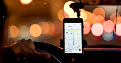 fotografia de celular mostrando rota de GPS preso ao vidro do carro