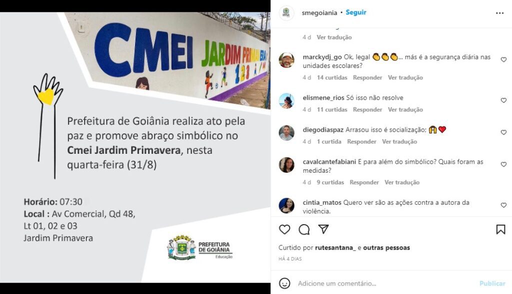 Realizado pela Secretaria Municipal de Educação (SME), o evento ocorreu como forma de protesto à agressão ocorrida poucos dias antes no mesmo local. Na segunda-feira (29), a diretora da unidade levou chineladas da mãe de um aluno. De acordo com a vítima, que participou do ato, isso aconteceu pois o aluno precisava ser mandando embora devido a uma febre, o que chateou a agressora. No Instagram, a SME declarou que repudia veementemente qualquer tipo de violência, seja contra servidores públicos ou estudantes. Entretanto, a reação da entidade não satisfez grande parte da população, que mostra revolta nas redes e nas ruas.