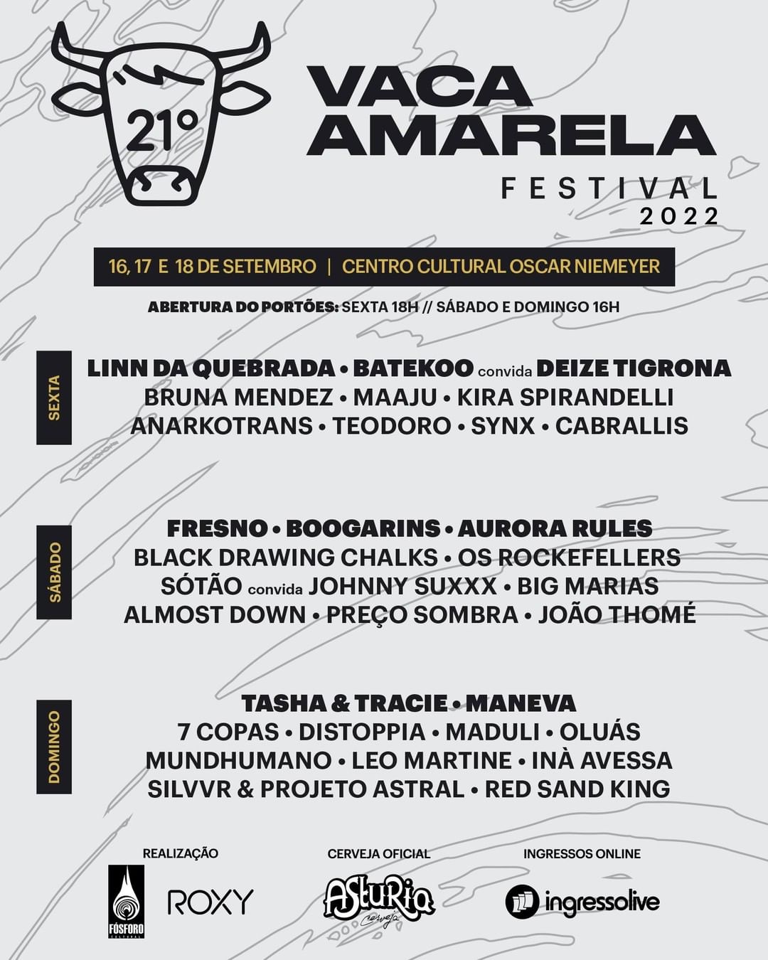 Confira abaixo a line-up completa das atrações do 21º Festival Vaca Amarela: