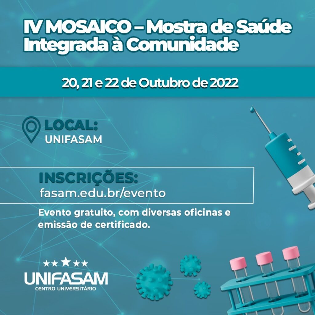 Realizado no site; https://fasam.edu.br/iv-mosaico-mostra-de-saudeintegrada-a-comunidade/