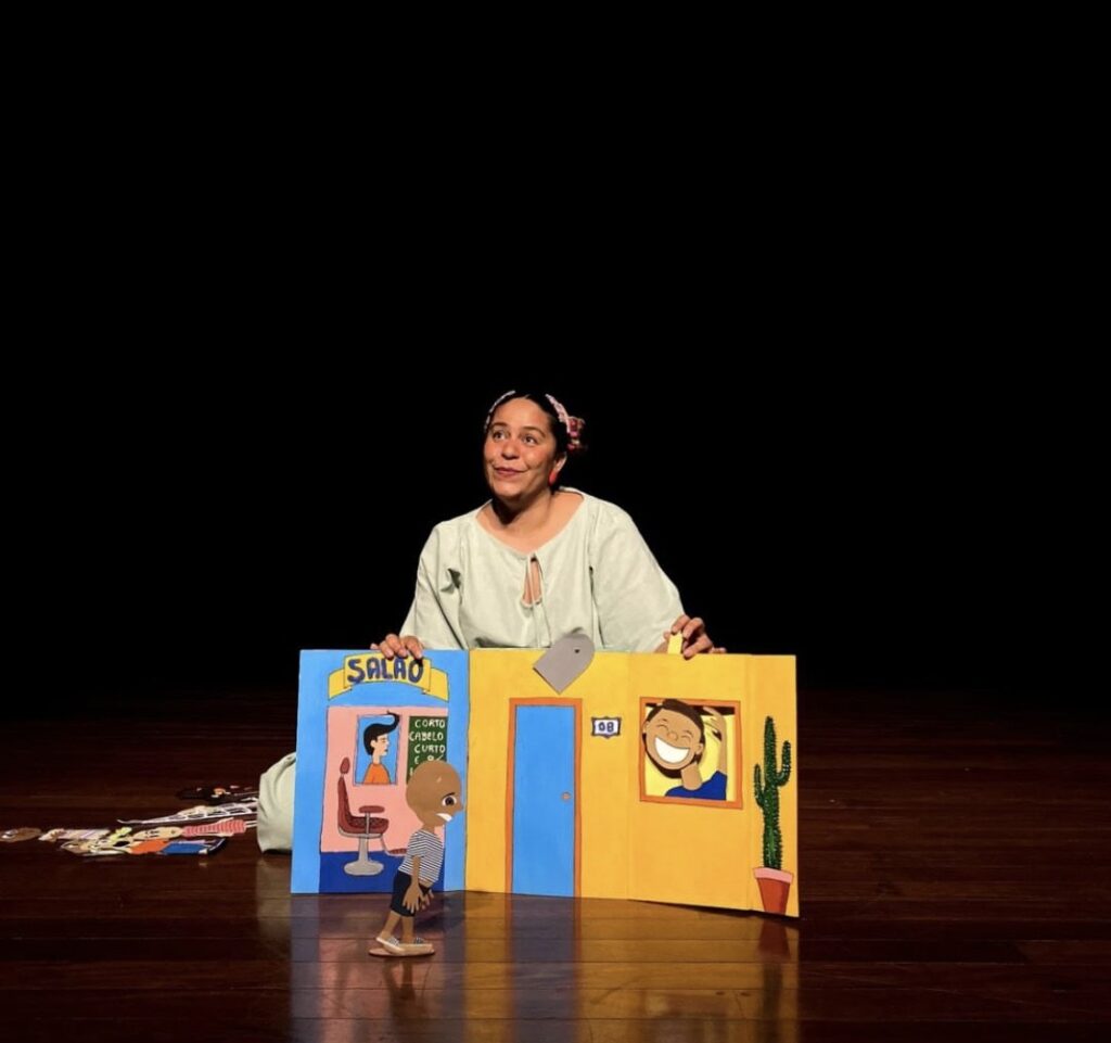 Há quanto tempo você está inserida nesse mundo da contação de histórias? De forma profissional, trabalho com teatro há mais de 20 anos e sempre gostei bastante de contação de histórias desde a infância, então nesse meio tempo fiz trabalhos teatrais com histórias infantis.
