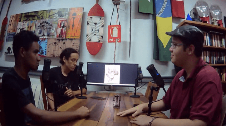 A outra entidade estudantil foi o Gheeck Jr. Tinha o Marcos, Marcos Sales, e ele me mandou um vídeo do Julius, de “Todo Mundo Odeia O Chris”, naquele discurso dele: “E se Marther Luther King tivesse desistido?” E assim eu continuei, fomos avançando. Daí pra frente, o podcast se tornou um projeto de extensão. Logo teve um colega que queria participar comigo, o David. Às vezes. ele participava do programa, mas basicamente era só eu. Depois entrou o Gabriel na história. Éramos esse trio. Começamos a dividir o trabalho, aliviou um pouquinho. Começamos a divulgar mais, fazer as coisas, e era mais divertido, porque não era mais algo só meu.
