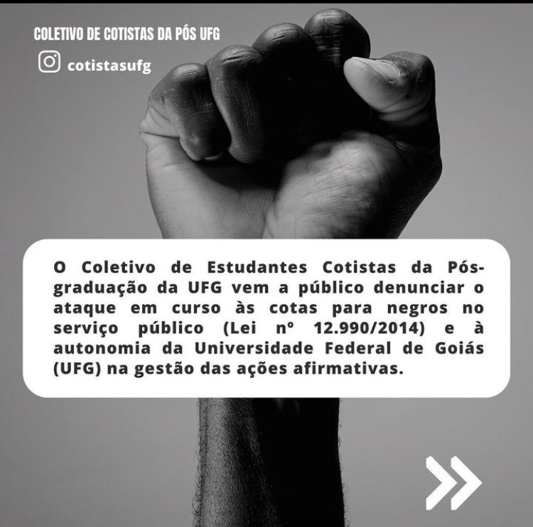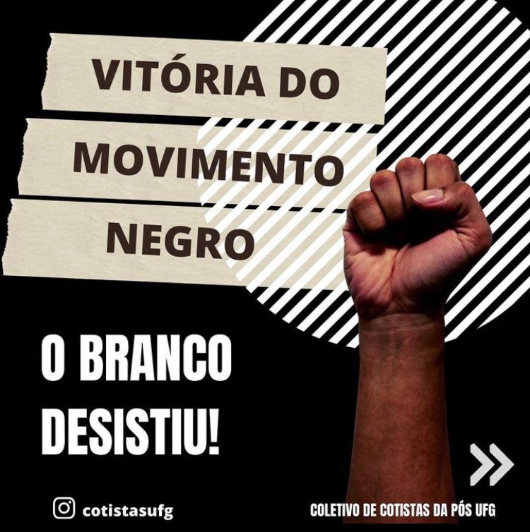 O Cotistas UFG prontamente se manifestou nas redes sociais sobre a decisão.