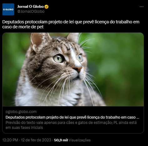 O PL 221/2023, de autoria dos deputados Fred Costa (Patriota-MG) e Bruno Lima (PP-SP), propõe que em caso de morte de cachorro ou gato de estimação, o dono do animal tenha direito a pelo menos um dia de licença do trabalho para lidar com o luto e assuntos relacionados à morte do pet. O projeto ainda não tem previsão para ser votado, mas já foi responsável por levantar uma questão: até que ponto o afeto por um animal doméstico afeta a vida das pessoas?
