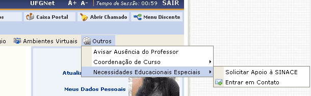 Atualmente existe o Núcleo de Acessibilidade da UFG, e o aluno pode solicitar apoio ao Sistema Integrado de Núcleos de Acessibilidade – SINAce.