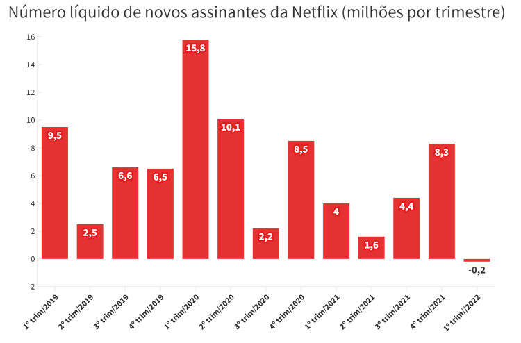 A gigante do streaming perdeu cerca de 200 mil assinantes no primeiro trimestre de 2022