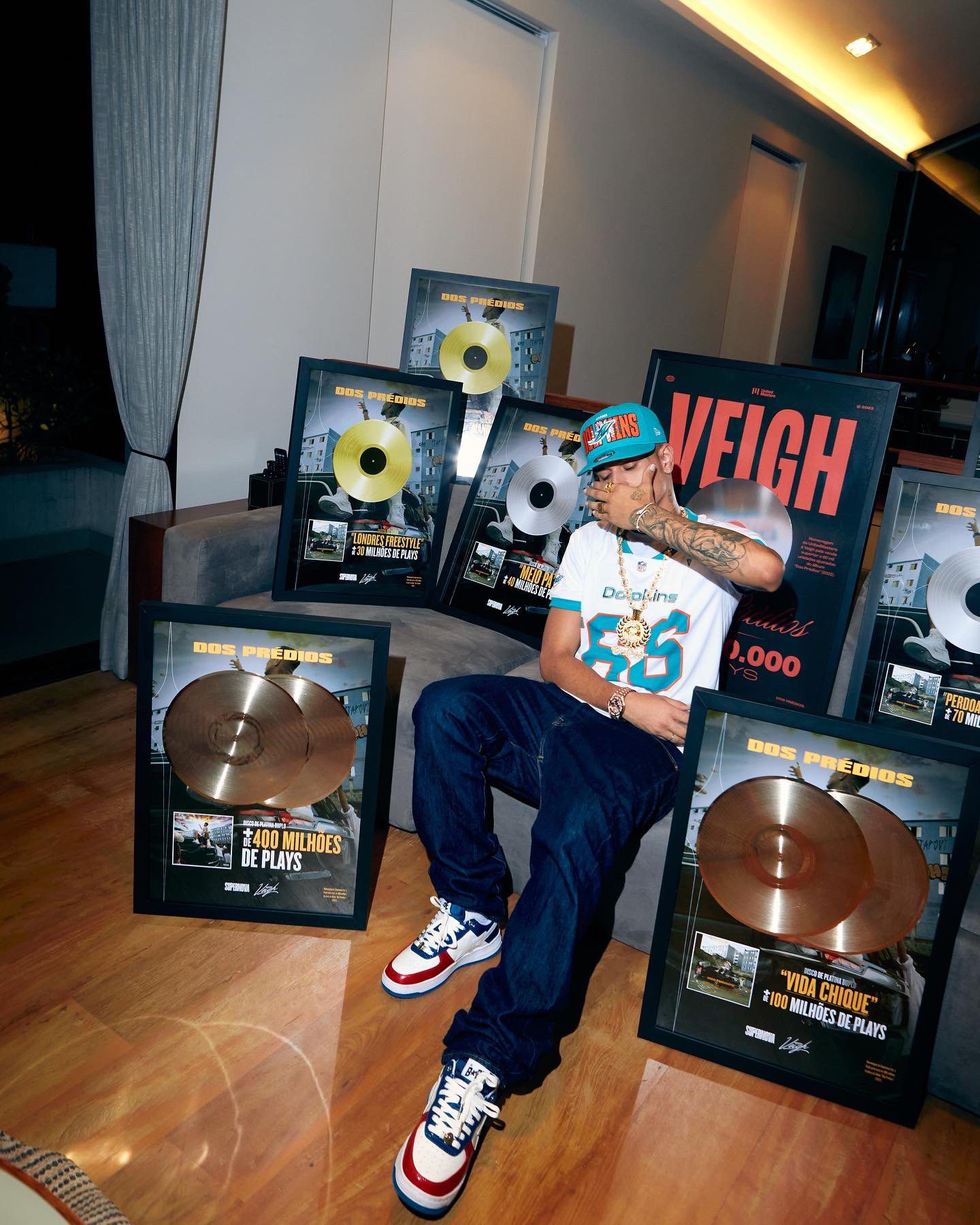 Veigh agora detém o recorde do melhor lançamento de álbum da história do Brasil na plataforma do Spotify, que antes pertencia à Anitta e seu álbum “Versions of Me”. “Dos Prédios Deluxe” atingindo o topo das plataformas, tanto no Brasil quanto globalmente, mostra o impacto do trabalho completo de Veigh.