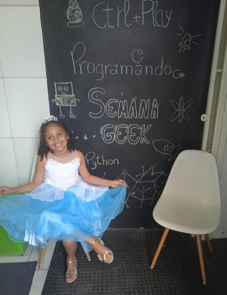 Do mesmo modo, conversamos com Morgana Alves, analista de sistemas e mãe de Ana Júlia Cardoso, de 8 anos, que decidiu matricular sua filha nas aulas de tecnologia com o objetivo de aumentar suas chances de se envolver nessa área em crescimento. Após frequentar as aulas por seis meses, Morgana relata que sua filha está mais concentrada e apaixonada pelo aprendizado. Ana Júlia não apenas adora frequentar as aulas, mas também demonstra um entusiasmo especial em criar jogos, revelando uma afinidade promissora com o mundo da tecnologia.
