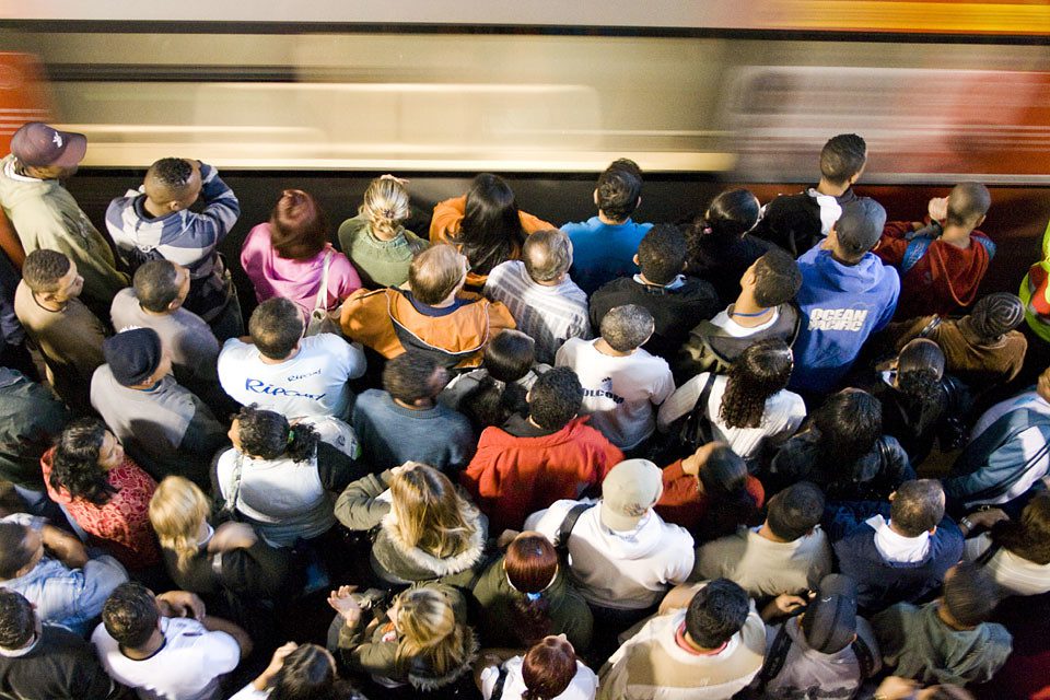 Passageiros aguardam trem para Guaianazes em plataforma lotada ao final do dia na Estação da Luz, São Paulo – SP (Foto: Fernando Stankuns)
