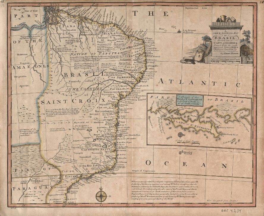 Mapa do Brasil de 1767 desenhado por Emanuel Bowen (Fonte: Biblioteca Digital Brasil)