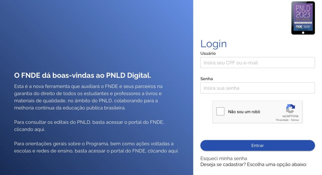 No site do Fundo Nacional de Desenvolvimento da Educação já há “boas-vindas” para o Guia do PNLD 2023 em formato digital: