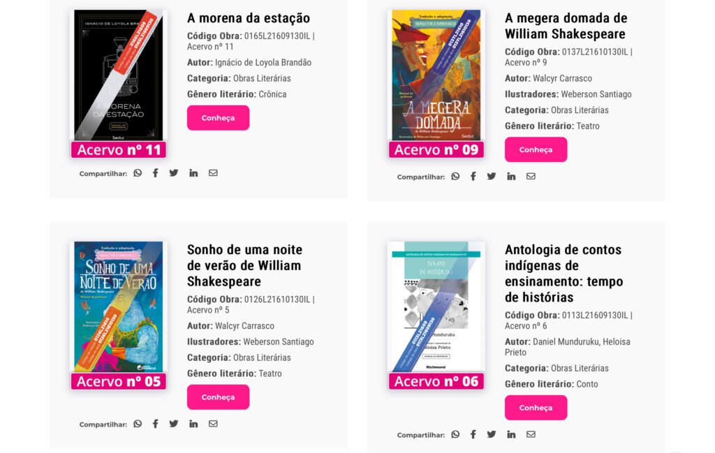 Com o intuito de promover a cultura de maneira ampla, diversas obras estão sendo disponibilizadas em diferentes formatos digitais, como PDF e EPUB3. Essa iniciativa busca facilitar o trabalho dos professores e a aprendizagem dos alunos, uma vez que muitos não tinham acesso aos livros físicos disponibilizados pelo governo ao longo dos anos, especialmente durante o período de quarentena, quando o COVID-19 estava se espalhando rapidamente.