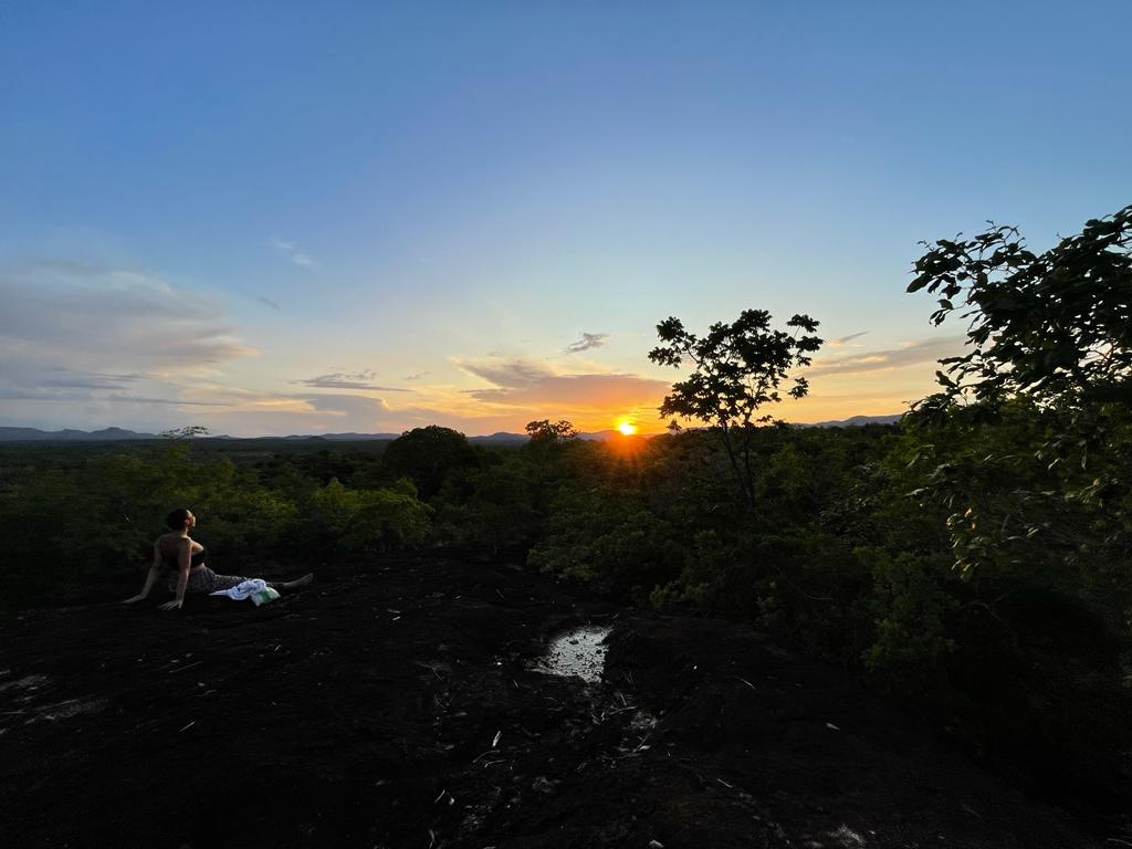 Passamos dias incríveis nessa comunidade, com direito a comidas veganas, oficinas de arte e música, lago de argila, nudismo, trilhas, música, acampamento…Um processo intenso de autoconhecimento e desintoxicação do frenesi da cidade grande. Em um desses dias subimos o morro para apreciar o pôr do sol e realizar a ¨Medicina do Cacau¨, ritual ancestral que consiste em derreter o cacau e ingeri-lô para aproveitar os benefícios do fruto para na saúde física e psicológica. Não bebi nada de cacau, até por que sou alérgica, mas estava entregue ao momento.