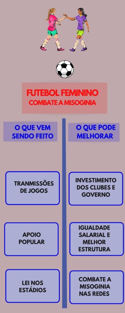 “Contudo, mesmo que com o passar do tempo o futebol tenha evoluído, se desenvolvido e se popularizado como o esporte mais visto e querido pelos brasileiros, ainda hoje é perceptível os resquícios das raízes conservadoras e misóginas, o que torna a realidade do futebol feminino um grande desafio de superação para as praticantes dessa modalidade.” Conclui a professora.
