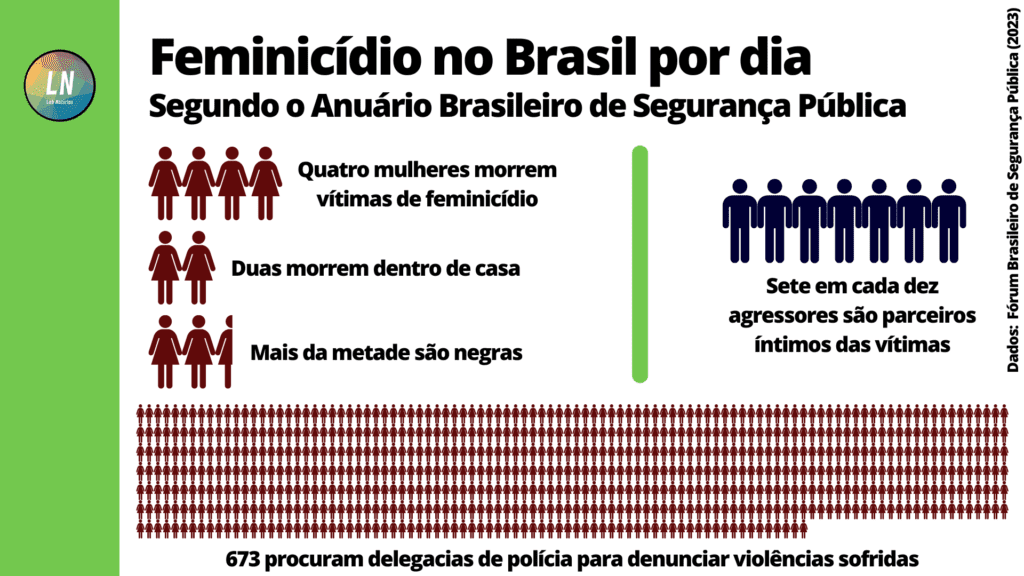 Alterado pela lei Lei 13.104/15, o Código Penal Brasileiro passou a considerar como crime de feminicídio os assassinatos envolvendo violência doméstica e familiar, menosprezo ou discriminação à condição de mulher da vítima. Em 2022, o número de feminicídios no Brasil subiu em 6,1% em relação ao ano anterior. Foram 1437 mulheres mortas no país – 90 a mais que em 2021 – e 7 em cada 10 dessas mulheres foram mortas dentro de suas casas. 61,1% das vítimas eram negras.