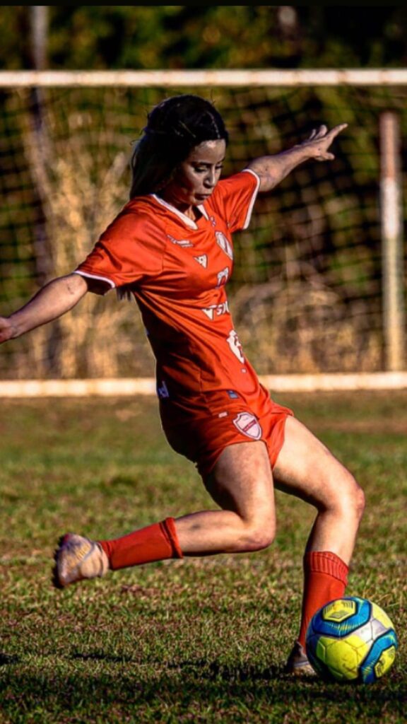 “Eu sempre fui sozinha, sai de casa meio que sem rumo, fui jogar nos interiores perto de casa e passei por vários clubes em Goiás. Eu enfrentei muita coisa, como eu não tinha muito dinheiro, trocava dinheiro de lanche e almoço por causa do transporte para ir treinar”.