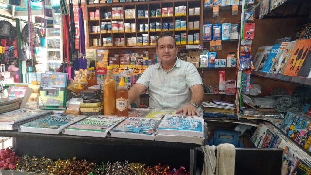 Eduardo em seu local de trabalho, banca resiste em um Centro cada vez mais vazio – Foto: Lab Notícias