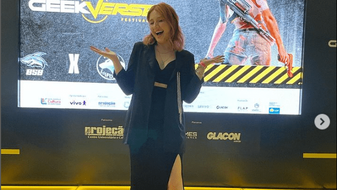 Como foi participar do GeekVerse Festival? Tem algum trabalho que você se sente mais confortável fazendo? Acho que todo trabalho sempre vai ser uma experiência, um desafio. Meu TCC foi sobre a cobertura jornalística de esportes sobre o Goiás, pois fui a primeira apresentadora a comandar campeonatos. Eu confesso que amo todos os trabalhos que faço, porque gosto muito de comentar, principalmente se for Valorant. Gosto de aprofundar em tudo que está em cima do palco, de fazer perguntas técnicas e de entender tudo no jogo. Estou apresentando o concurso de cosplay da Copa Goiânia, o que é sempre gratificante. Eu topo tudo, sempre digo que sou uma eterna aprendiz, pois não sei de tudo e nunca saberei. O GeekVerse foi gratificante, já apresentei Fifa, o que foi meu maior desafio. Já fui obrigada a cobrir futebol, então tinha um conhecimento básico, mas durante três meses antes do campeonato, joguei para aprimorar meus conhecimentos sobre o assunto. Faço isso sempre que me apresentam alguma proposta relacionada a um jogo que não conheço muito.