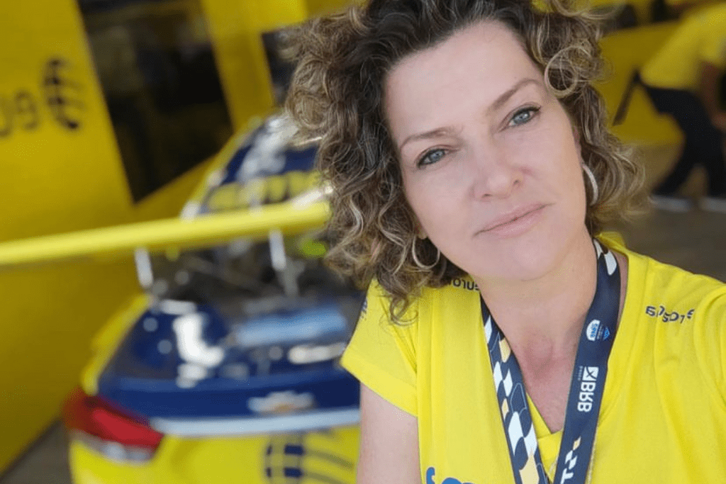 Patrícia Alves no box da Eurofarma, em Interlagos, em 2023. Foto: Acervo Pessoal