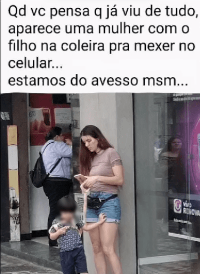 acusada de mexer no celular, enquanto o filho está em uma coleira