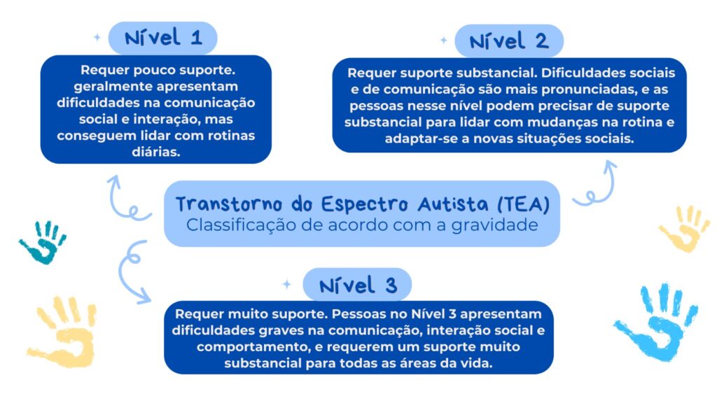 Os termos “nível um, dois e três de suporte” são hoje os corretos a serem usados. Pois assim, buscam quebrar com as barreiras que modalidades como “leve” ou “grave” impõe no grau de necessidade de suporte que um neurodivergente possa necessitar, trazendo consigo, sua própria individualidade.