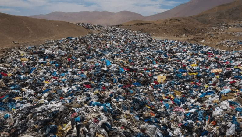 Esta é uma imagem que ilustra muito bem o que acontece atualmente no Brasil e no mundo. Diversos países da Europa, Ásia e América do Norte, principalmente os Estados Unidos, descartam seus resíduos têxteis enviando-os para o Chile, com o intuito de serem revendidos. Todavia, estas roupas são indevidamente descartadas, transformando o Deserto do Atacama em um verdadeiro mar de roupas.