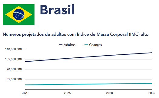 Atualmente no Brasil, 1 a cada 3 crianças está com o Índice de Massa Corporal (IMC) elevado, e esse número pode saltar para 50% dos casos nos próximos anos, entre os indivíduos de 5 a 19 anos. Como consequência, esse quadro de sobrepeso poderá acarretar as crianças e jovens, pressão alta, hiperglicemia e colesterol HDL baixo, aponta o documento da WOF.
