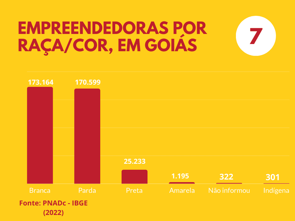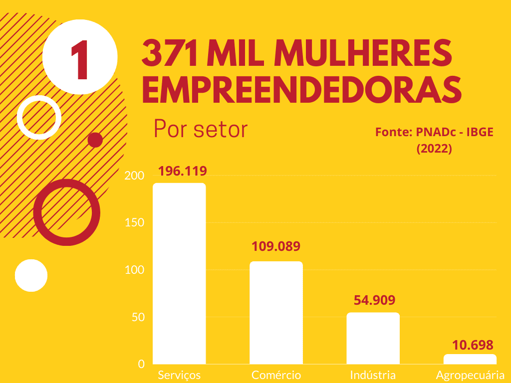 Em Goiás, 50,5% da população total é formada por mulheres, o que representa 3,7 milhões de pessoas. Do total de mulheres no Estado, 10% (371.000) são empreendedoras. Assim, conhecer os aspectos principais do empreendedorismo por mulheres é importante para ajudar a promover a igualdade de gênero, incentivar a diversidade nos negócios, subsidiar a formulação de políticas públicas e colher os benefícios econômicos, sociais e culturais que resultam da autonomia das mulheres no mundo dos negócios. Esses 10% estão divididos por setor, sendo que o setor de serviços lidera com quase 200 mil empreendedoras, seguido pelo comércio com 109.089; depois a indústria com mais de 50 mil e por último, a agropecuária com aproximadamente 10.700.