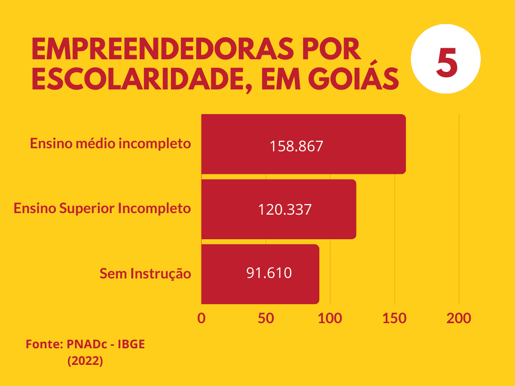 Baseado na pesquisa sobre o perfil da empreendedora goiana, ao analisar a média de idade em relação ao grau de escolaridade, é perceptível um menor nível de escolaridade entre 51 e 66 anos. E os níveis mais elevados desta variável se concentram entre 35 e 38 anos. A professora de empreendedorismo, Eva Arantes Ribeiro, salienta que o nível de educação do indivíduo desempenha um papel crucial na gestão do negócio, indo além da educação convencional (ensino fundamental, médio e superior) para abranger o desenvolvimento de habilidades, técnicas e conhecimentos específicos. Ela observa: “nesse contexto, é fundamental reconhecer o papel e o interesse do Estado na promoção da educação obrigatória para a população empreendedora”. De acordo com a professora, as repercussões das ações desse grupo têm um impacto significativo no sucesso dos negócios no país.