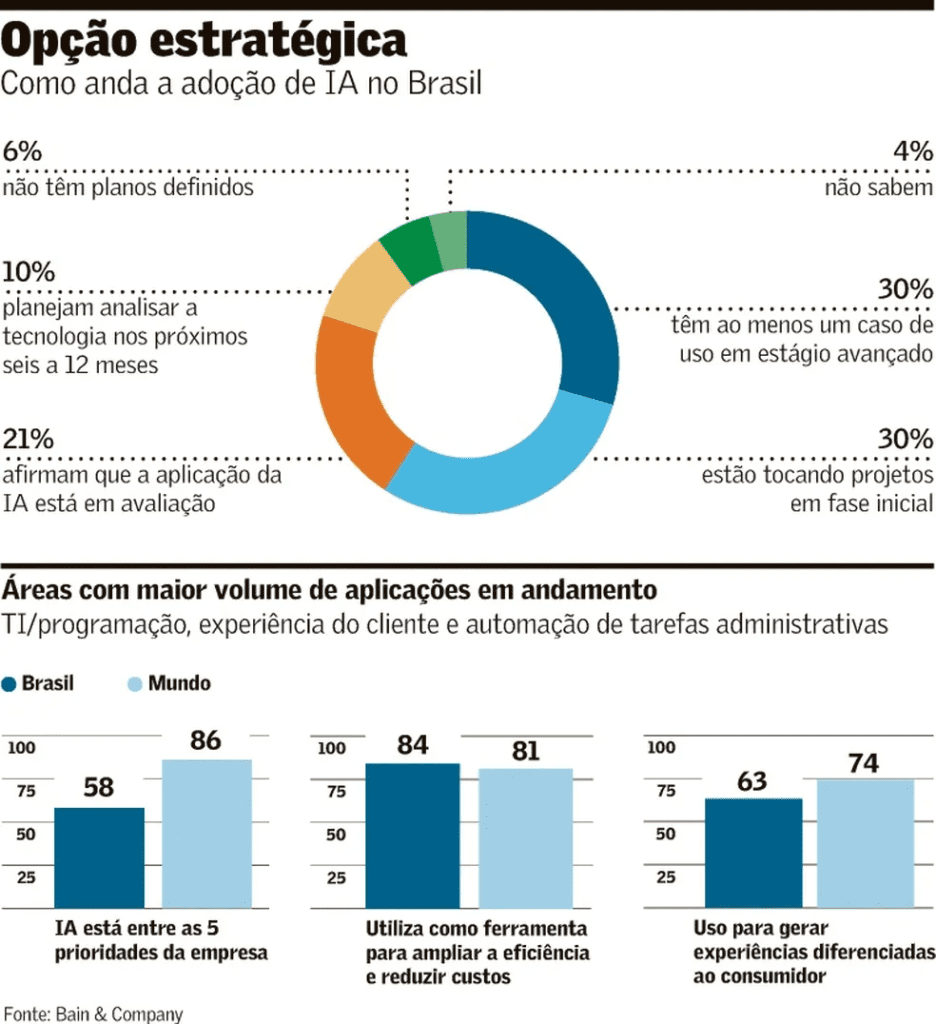 Em documento postado pelo Governo Federal, em julho de 2021, um estudo de 2019, da Fundação Getúlio Vargas, dizia que “Para simular o impacto da adoção de IA na economia brasileira no prazo de 15 anos, considerando três níveis diferentes de taxa de adoção de IA: 5%; 10%; e 26% durante esse período. Em todos os cenários simulados, identificou-se uma reestruturação no mercado de trabalho em termos de diminuição de empregos menos qualificados e um aumento nos postos mais qualificados.”