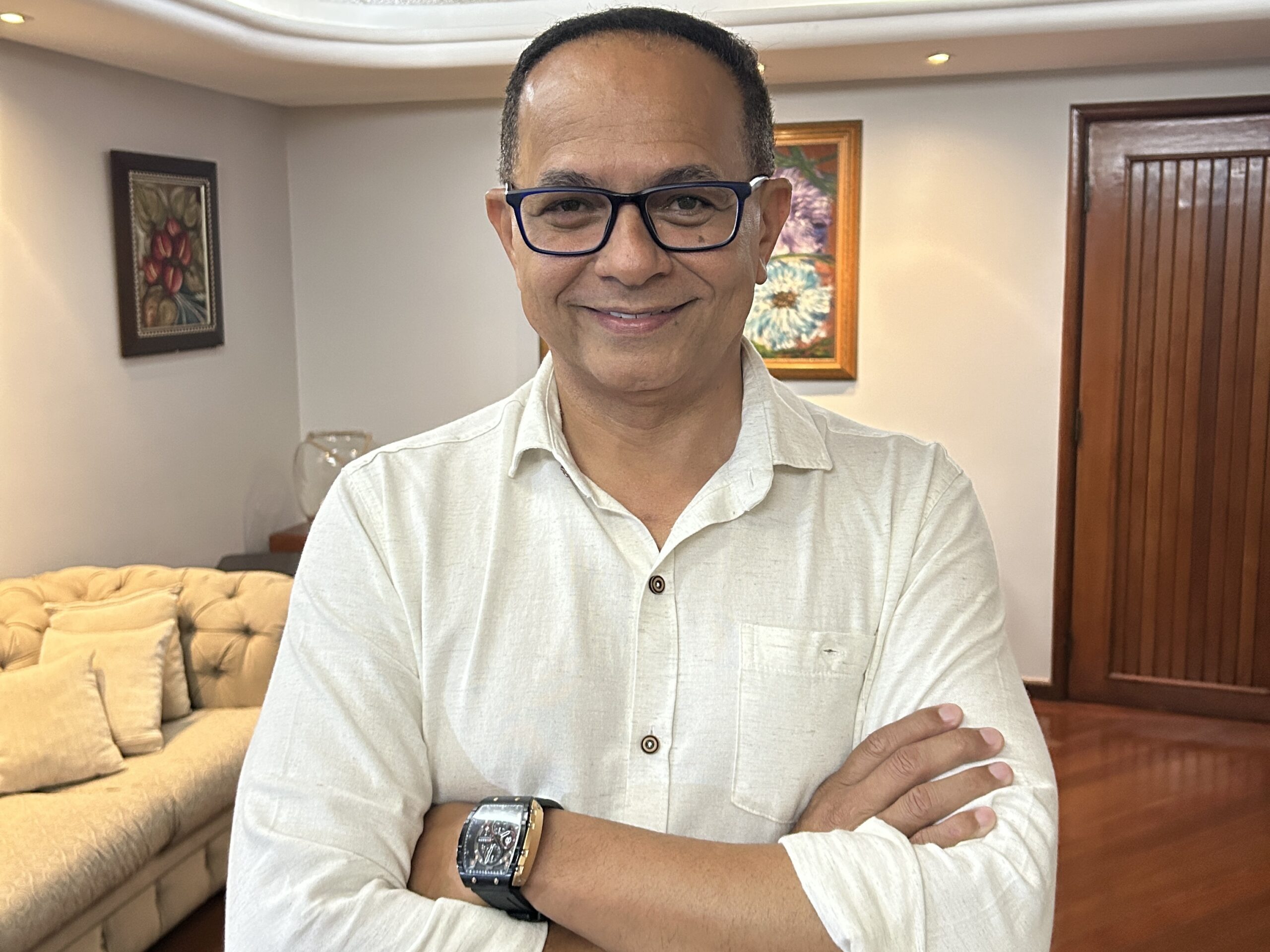E aí eu vim para Goiânia, em 89, terminei o ensino médio aqui e comecei a prestar vestibular para comunicação. Foi quando eu passei na UFG, me formei e tem 29 anos que eu estou na televisão. E eu sempre quis a televisão. E foi bacana porque, quando eu estava no curso, eu fui fazer estágio na TV Serra Dourada. Lá eu passei pela produção, pela edição, e por último fui para a reportagem. E foi assim, aquela identificação total. E aí tinha uma vaga, quando eu já estava terminando o estágio, eu fui lá, conversei com o chefe na época, que era o Paulo Beringhs, e aí falei com ele da possibilidade de, quem sabe, eu ficar. Ele avaliou que a redação já tinha ido lá falar que ‘ó, o menino é bom, tem futuro, contrata ele’. Ele até brincou, falou que eu poderia não ser um grande jornalista, mas eu era um grande lobista. E eu não entendi muito, mas depois ele me explicou, porque se todo mundo veio aqui pedir para te contratar numa redação difusa como é aqui, é sinal que eu acho que você dá conta de fazer o que você está querendo fazer. Então, eu vou te contratar. E eu estou lá há 29 anos. Essa é a história.
