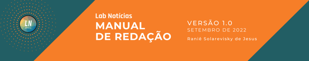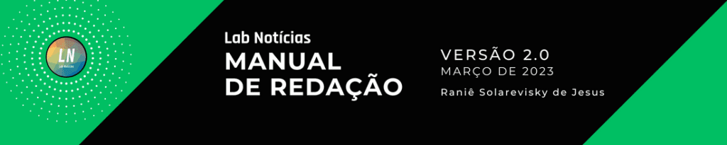 Texto na Imagem: Lab Notícias - Manual de Redação - Versão 4.0 - Julho de 2023 - Raniê Solarevisky de Jesus